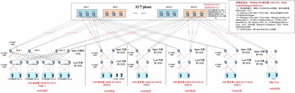 瀚数团队基于开源nccl定制化开发的集合通信库,让本项目超大规模集群通信能力在主流通信方式上均优于常规开源版本。增加的minipod 减少交换机设置,通过路由算法和轨道优化,减少了50几台交换机配置。集群增加8台GPU热备轮询,降低百分之95%业务停机风险。